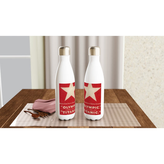 White Star Olympic & Titanic Vintage Poster Advertising 1910 | White 17oz Stainless Steel Water Bottle